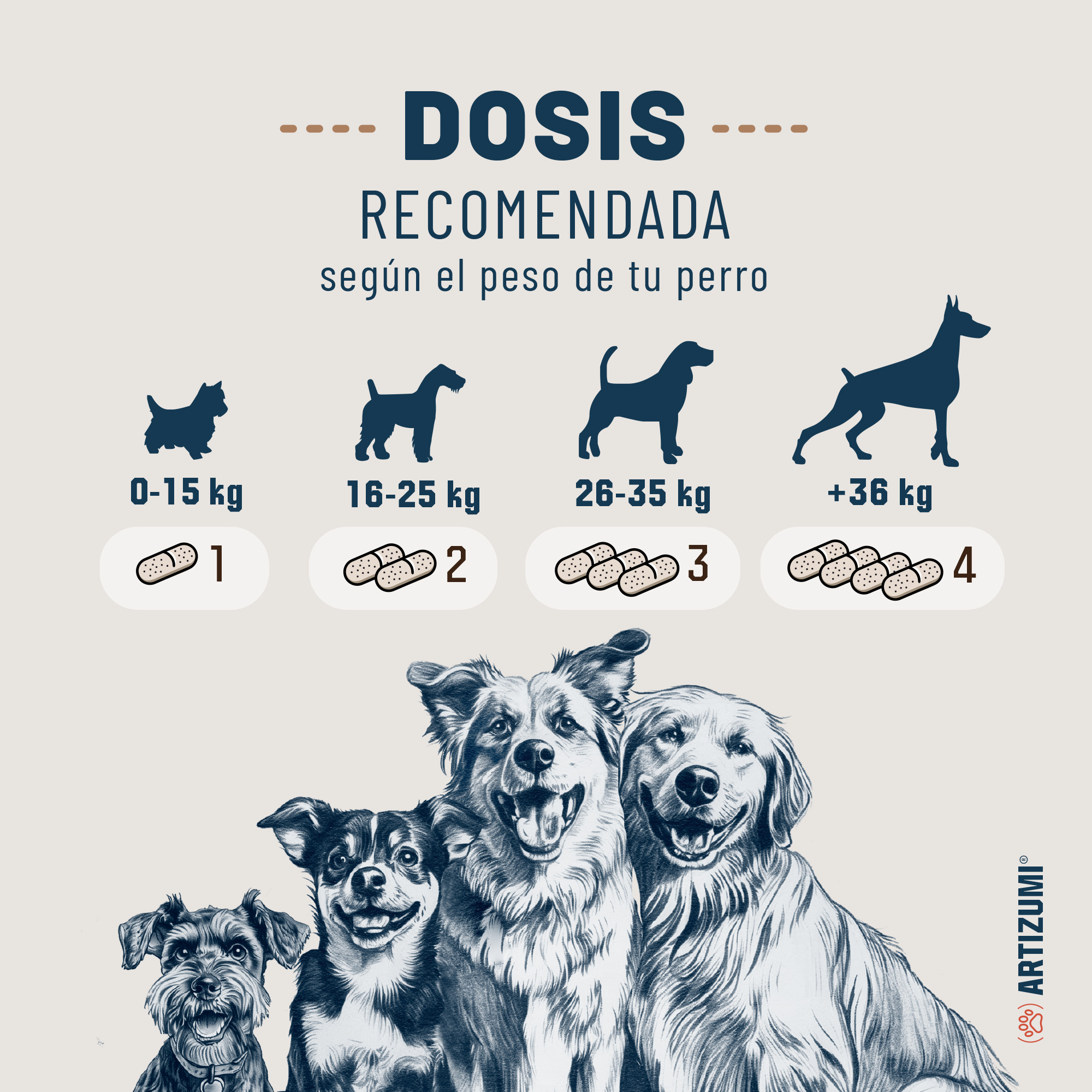 Artizumi es apto para todas las razas y edades, desde cachorros hasta perros mayores que necesitan un refuerzo en sus articulaciones.